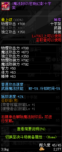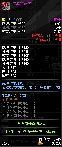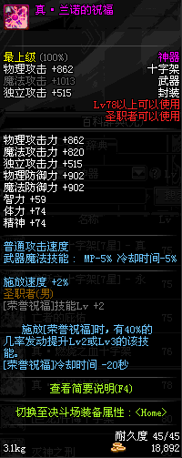 | 70 | 战地狂人十字架 | *Lv70~76普通地下城怪物掉落 *在加百利的神秘商店购买 |