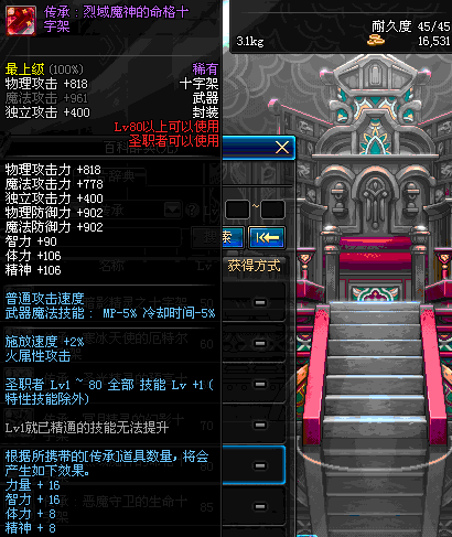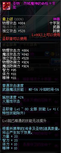 | 80 | 圣物 : 烈域魔神的命格十字架 | *Lv80~86普通地下城怪物掉落 | ||