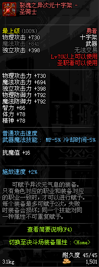 | 70 | 裂魂之异次元十字架 - 圣骑士 | *领主 掉落 (地下城:虚无之境, 黑色大地, 巴卡尔之城) | ||
