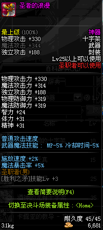 | 25 | 圣物 : 惩罚天使之十字架 | *Lv24~31普通地下城怪物掉落 | ||