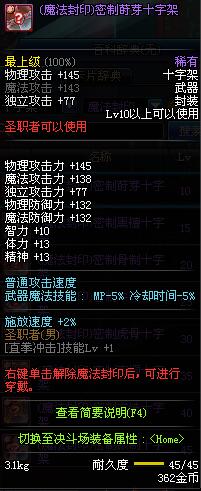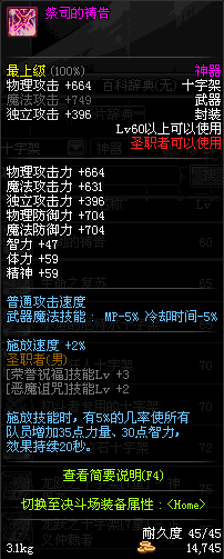 | 45 | 歌兰蒂斯的圣银十字架 | *Lv45~51普通地下城怪物掉落 *在加百利的神秘商店购买 |