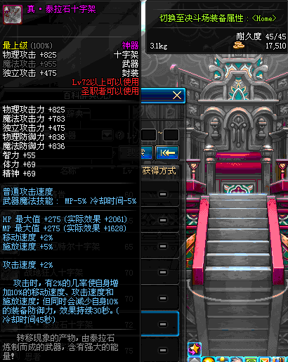 | 72 | 真 · 泰拉石十字架 | *设计图(70LV以上普通地下城 登场的NPC加百利 出售) *泰拉石十字架 → 用远古神器装备进化书升级(NPC船长鲁特 出售) |