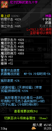| 40 | 圣物 : 复魂天使之十字架 | *Lv39~46普通地下城怪物掉落 |