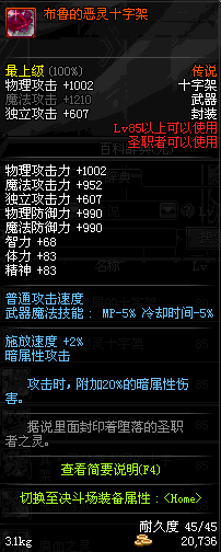 | 85 | 布鲁的恶灵十字架 | *巨灵布鲁 掉落(地下城: 痛苦之村列瑟芬 6图) *设计图(地下城 魂:幽灵列车 登场的NPC加百利 出售) |