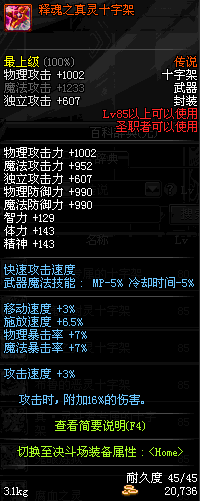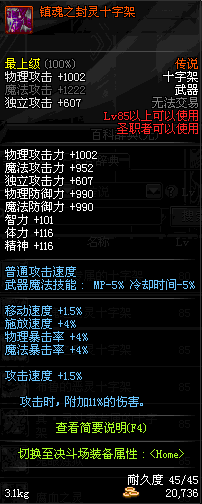 | 85 | 镇魂之封灵十字架 | *时空之门地区 - 吟游诗人艾丽丝 出售 (镇魂之石×100) *购买镇魂武器礼盒(低级镇魂之石×140) |