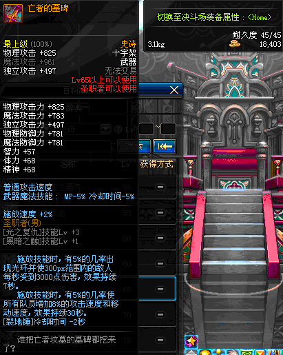 | 65 | 亡者的墓碑 | *Lv64~71深渊地下城怪物掉落 *在NPC沉默之克雷娅的物品店购买 |