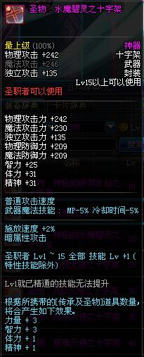 | 15 | 圣物 : 水魔碧灵之十字架 | *Lv13~21普通地下城怪物掉落 |