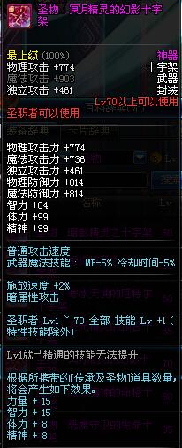 | 70 | 圣物 : 冥月精灵的幻影十字架 | *Lv70~76普通地下城怪物掉落 |