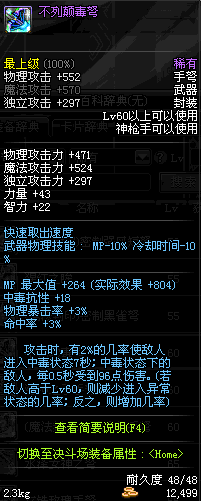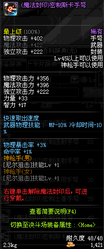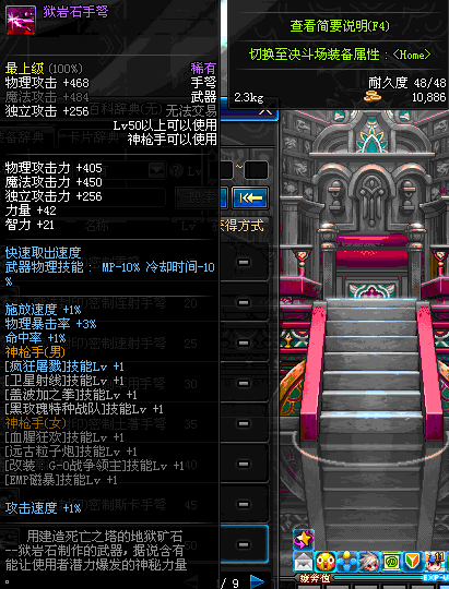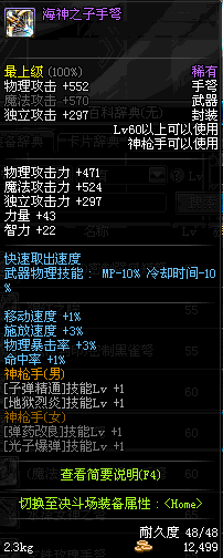 | 50 | 幽灵手弩 | *Lv50~56普通地下城怪物掉落 *在加百利的神秘商店购买 |