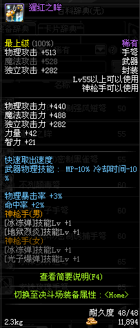 | 55 | 赤帝弩 | *Lv54~61深渊地下城怪物掉落 *在NPC沉默之克雷娅的物品店购买 |