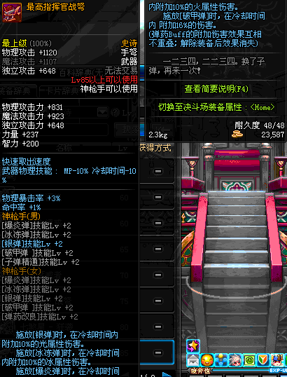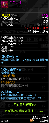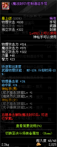 | 85 | 战术围攻手弩 | *Lv85~91普通地下城怪物掉落 *在加百利的神秘商店购买 |