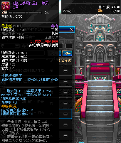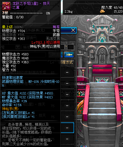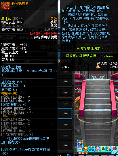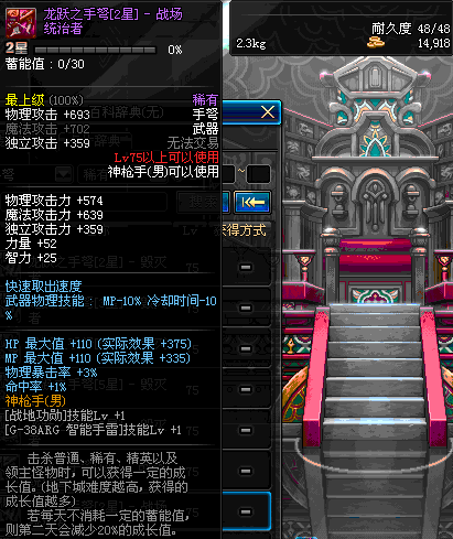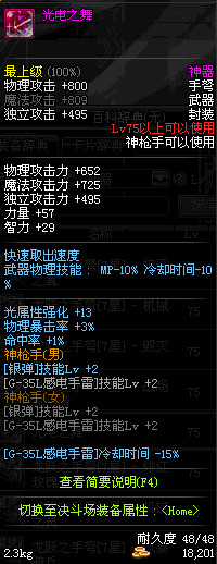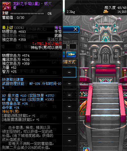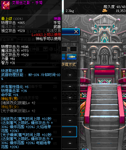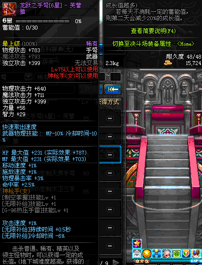 | 75 | 光电之舞 | *Lv75~81普通地下城怪物掉落 *在加百利的神秘商店购买 |