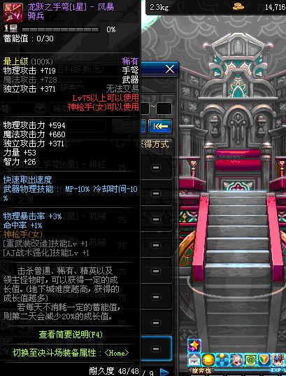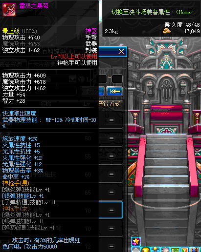 | 70 | 雷狼之暴弩 | *Lv70~76普通地下城怪物掉落 *在加百利的神秘商店购买 |