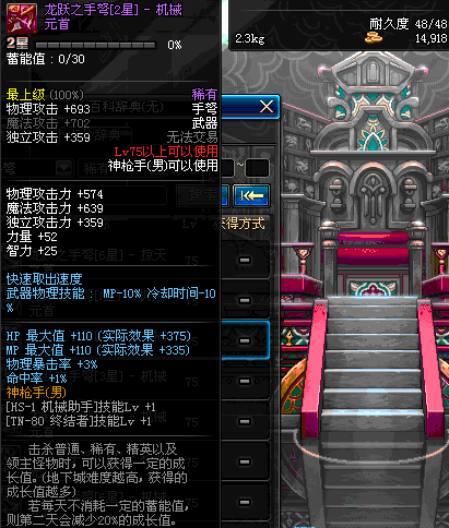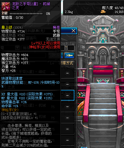 | 75 | 龙跃之手弩[2星] – 机械之灵 | *完成二次觉醒任务后可以从NPC小铁柱处获得此道具。 | ||