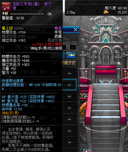 | 15 | 克苏鲁手弩 | *Lv13~21普通地下城怪物掉落 *在加百利的神秘商店购买 |