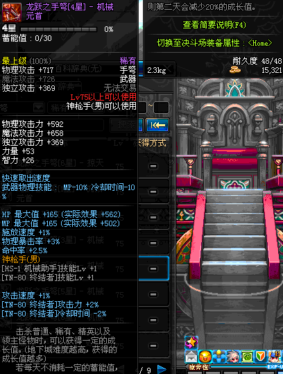 | 75 | 龙跃之手弩[6星] – 机械之灵 | *完成二次觉醒任务后可以从NPC小铁柱处获得此道具。 | ||
