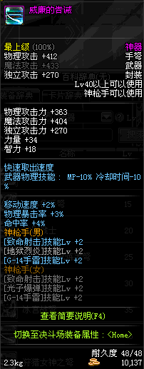 | 40 | 圣物 : 智慧天使之狩猎弩 | *Lv39~46普通地下城怪物掉落 |