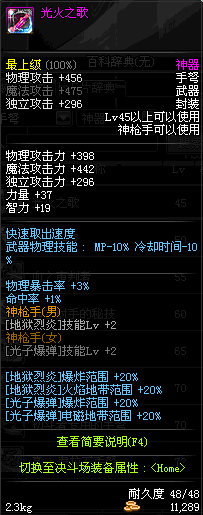 | 45 | 光火之歌 | *Lv45~51普通地下城怪物掉落 *在加百利的神秘商店购买 |