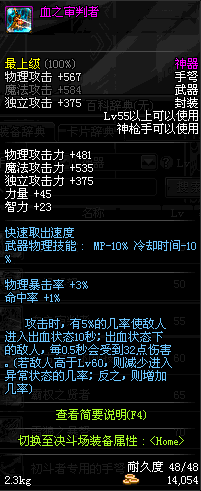 | 55 | 血之审判者 | *Lv53~61普通地下城怪物掉落 *在加百利的神秘商店购买 |