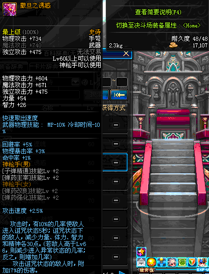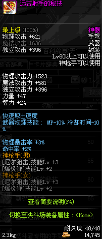 | 60 | 远古射手的秘技 | *Lv58~66普通地下城怪物掉落 *在加百利的神秘商店购买 |