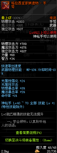 | 80 | 魔刹之穿云弓 | *Lv80~86普通地下城怪物掉落 *在加百利的神秘商店购买 |