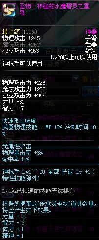 | 20 | 圣物 : 神秘的水魔碧灵之重弩 | *Lv19~26普通地下城怪物掉落 | ||