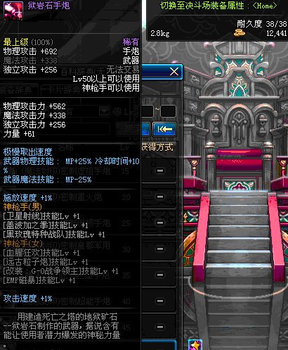 | 50 | 狱岩石手炮 | *觉醒任务 - 死亡之塔30层任务奖励 | ||