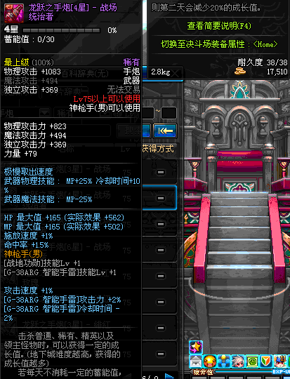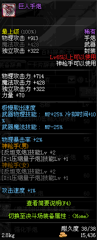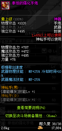 | 65 | 泰坦的强化手炮 | *Lv65~71普通地下城怪物掉落 *在加百利的神秘商店购买 |