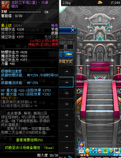 | 75 | 龙跃之手炮[3星] – 风暴骑兵 | *完成二次觉醒任务后可以从NPC小铁柱处获得此道具。 | ||
