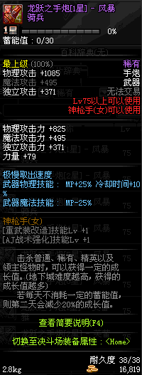 | 75 | 龙跃之手炮[1星] – 风暴骑兵 | *完成二次觉醒任务后可以从NPC小铁柱处获得此道具。 | ||