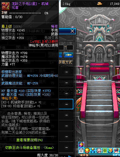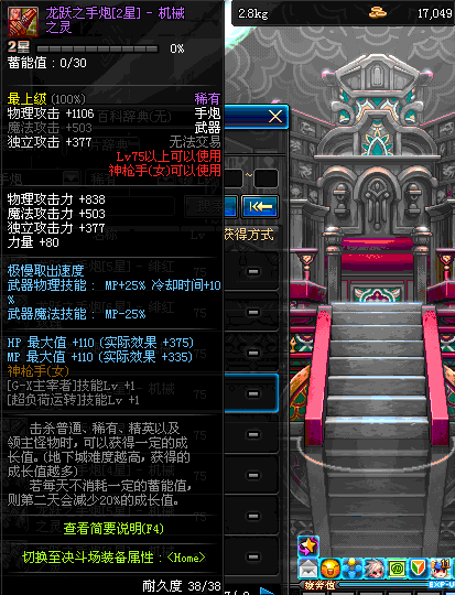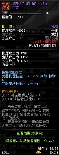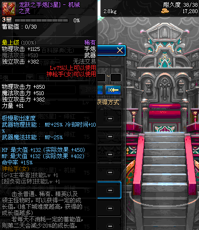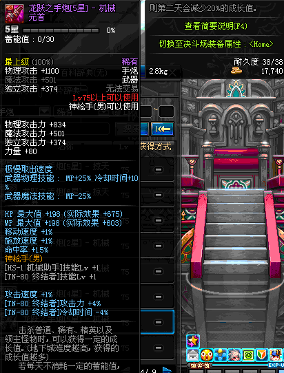 | 75 | 龙跃之手炮[3星] – 机械之灵 | *完成二次觉醒任务后可以从NPC小铁柱处获得此道具。 | ||