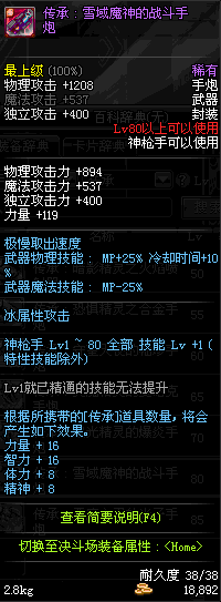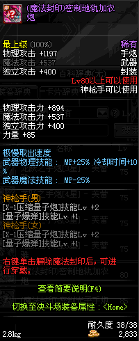 | 80 | 超能磁轨炮 | *Lv80~86普通地下城怪物掉落 *在加百利的神秘商店购买 |
