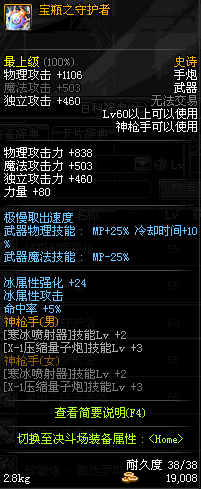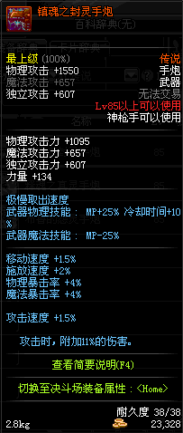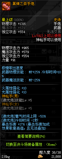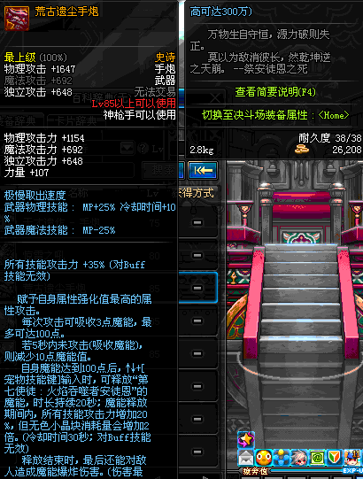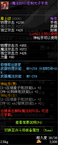 | 85 | 光火离子炮 | *Lv85~91普通地下城怪物掉落 *在加百利的神秘商店购买 |