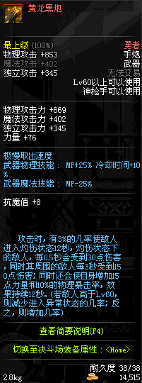 | 60 | 黄龙黑炮 | *莎兰 出售(混沌魔石×60) | ||