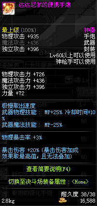 | 60 | 达达尼尔的便携手炮 | *Lv58~66普通地下城怪物掉落 *在加百利的神秘商店购买 |