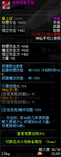 | 70 | 苍穹绝音手炮 | *Lv70~76普通地下城怪物掉落 *在加百利的神秘商店购买 |