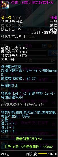 | 40 | 圣物 : 幻象天使之超能手炮 | *Lv39~46普通地下城怪物掉落 |