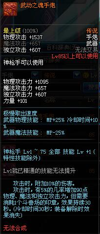 | 75 | (魔法封印)密制啸傲手炮 | *Lv75~81普通地下城怪物掉落 *完成[调查紫雾团]任务 *使用Lv75~81怪物掉落的设计图进行制作 |