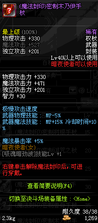 | 40 | 圣物 : 复魂天使的木乃伊手杖 | *Lv39~46普通地下城怪物掉落 |