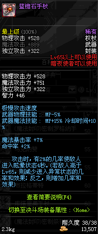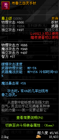| 65 | 布鲁之怨灵手杖 | *Lv64~71深渊地下城怪物掉落 *在NPC沉默之克雷娅的物品店购买 |