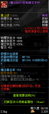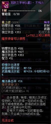 | 70 | 深渊之暗涌手杖 | *Lv70~76普通地下城怪物掉落 *在加百利的神秘商店购买 |