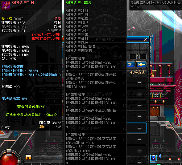 | 85 | 蛛王权杖 | *Lv84~91深渊地下城怪物掉落 *攻坚队完成安徒恩团队模式的[消灭安徒恩]任务时,获得的奖励。 |