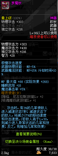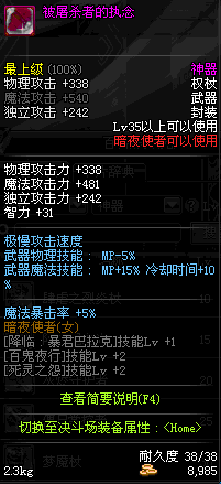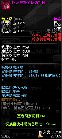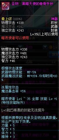 | 35 | 圣物 : 黑暗天使的兽骨手杖 | *Lv34~41普通地下城怪物掉落 |