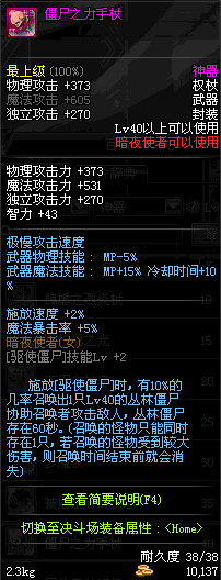 | 40 | 僵尸之力手杖 | *Lv39~46普通地下城怪物掉落 *在加百利的神秘商店购买 |