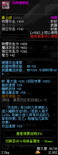 | 50 | 深渊催眠曲 | *Lv50~56普通地下城怪物掉落 *在加百利的神秘商店购买 |