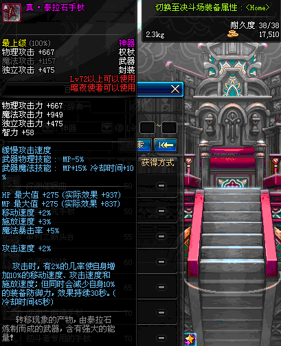 | 72 | 真·泰拉石手杖 | *设计图(70LV以上普通地下城 登场的NPC加百利 出售) *泰拉石手杖 → 用远古神器装备进化书升级(NPC船长鲁特 出售) |
