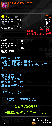 | 85 | 镇魂之封灵权杖 | *时空之门地区 - 吟游诗人艾丽丝 出售 (镇魂之石×100) *购买镇魂武器礼盒(低级镇魂之石×140) |