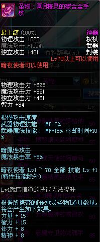 | 70 | 圣物 : 冥月精灵的碳合金手杖 | *Lv70~76普通地下城怪物掉落 |
