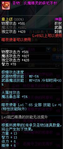 | 65 | 圣物 : 炎魔精灵的祭祀手杖 | *Lv65~71普通地下城怪物掉落 |