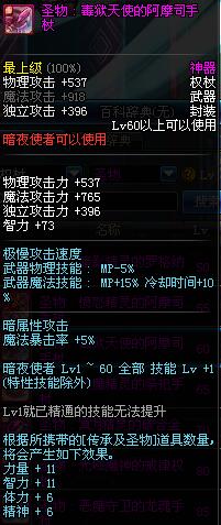 | 60 | 圣物 : 毒狱天使的阿摩司手杖 | *Lv58~66普通地下城怪物掉落 |